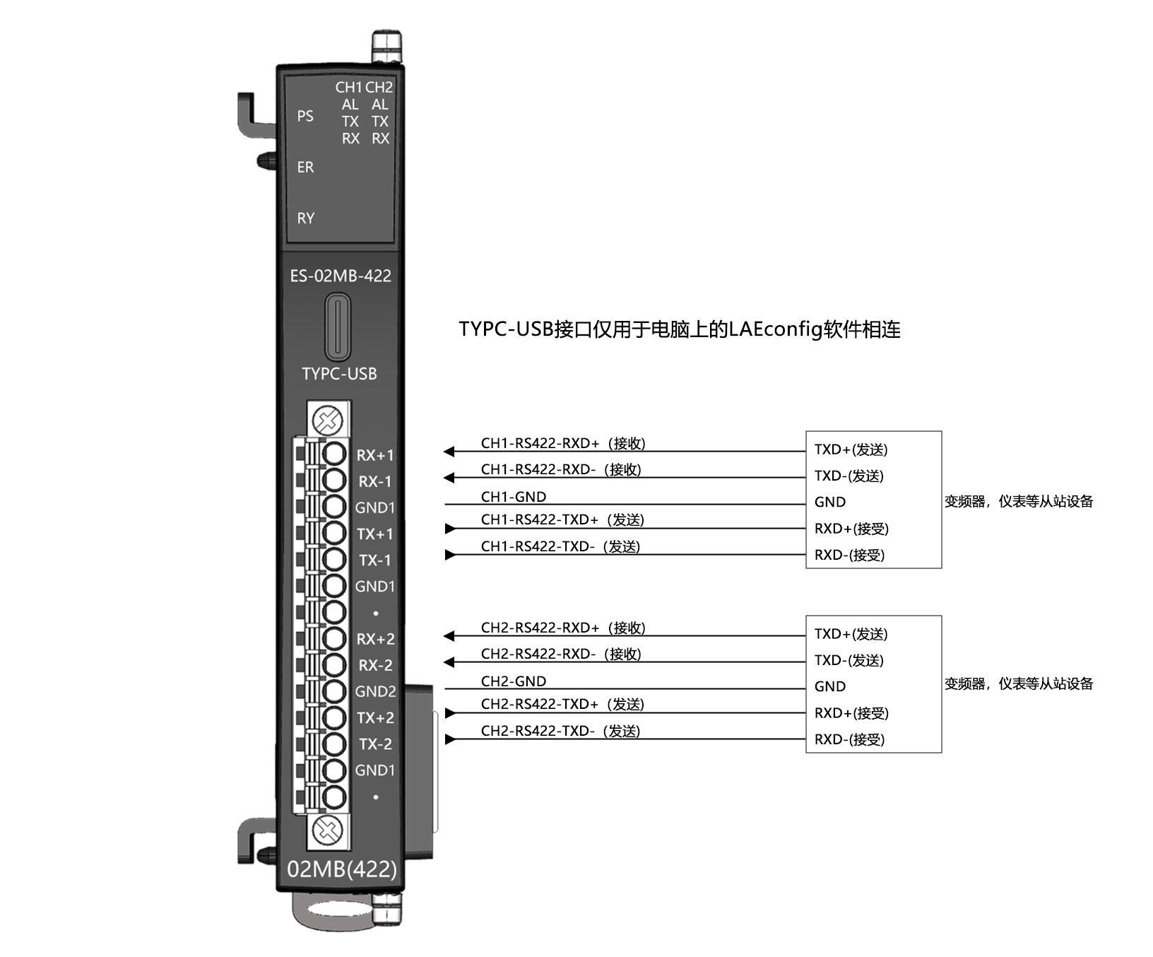 通道類型:RS422(全雙工)