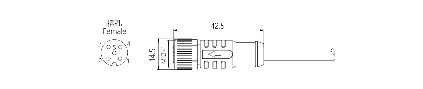 規(guī)格描述:M12-散線,直型孔-5芯散線,A-Code